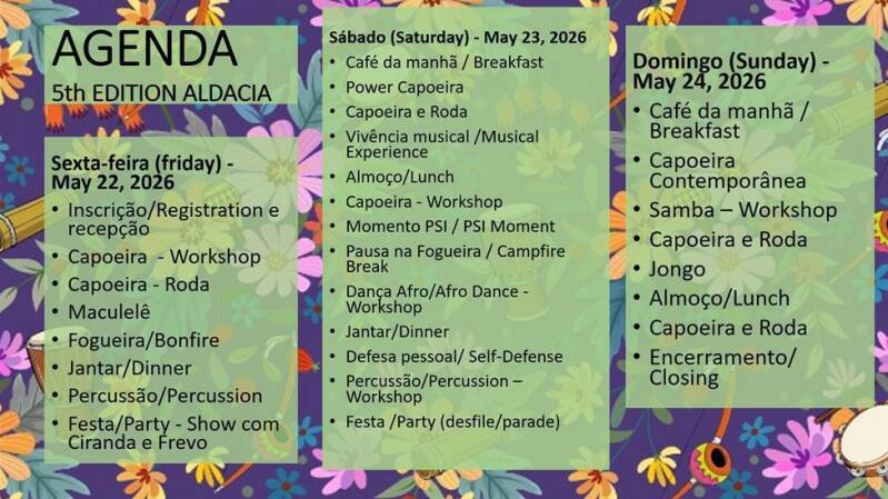 Com luta e muita resistência na construção deste caminho de desenvolvimento e empoderamento feminino, o evento chega à sua 5ª edição. O AldaCIA acontecerá nos dias 22, 23 e 24 de maio de 2026, novamente em meio à natureza e no colo da Mãe Terra, no bosque Groepsaccommodatie (Leersum), em Utrecht — Holanda.